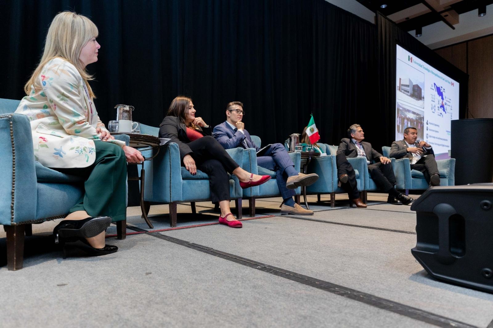 Panelists Diego Hernández Huerta (Global Skills Institute), Dr. Enrique Gallegos and Lic. Blanca Zavala (Universidad Tecnológica Metropolitana de San Luis Potosí), Francisco Quiroz (Universidad Tecnologica de Jalisco), and Veronica Soto (Trade Commissioner for Education in Guadalajara, Mexico), shared practical insights on how Canadian institutions can work with partners in Mexico to expand opportunities for learners.